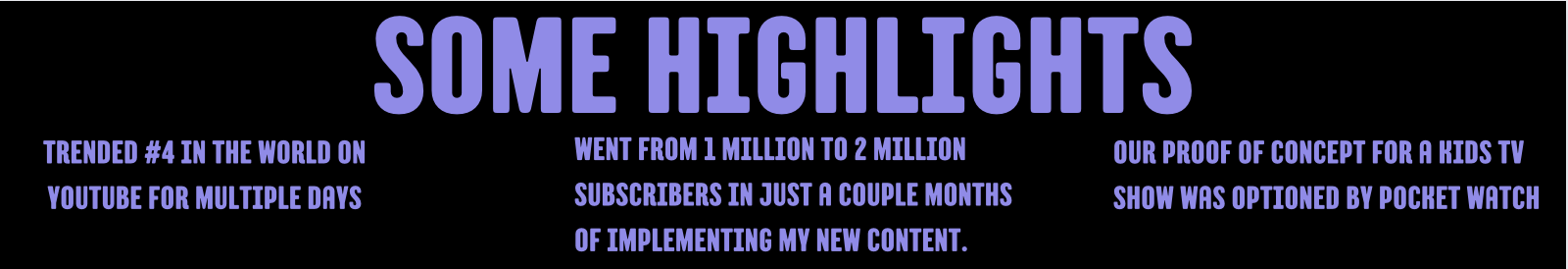 Alongside our viral success, my implementation of fresh, innovative and out of the box content ideas contributed to the extraordinary growth of Marlin's YouTube channel. Within a few short months, our subscriber count skyrocketed from 1 million to an impressive 2 million, exemplifying the effectiveness of our strategic content approach and capturing the interest of a broader audience.
